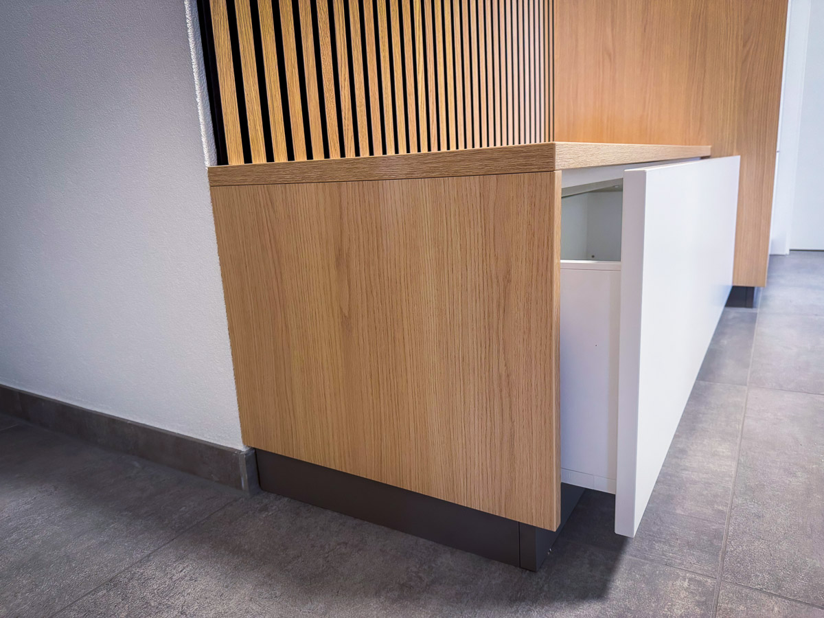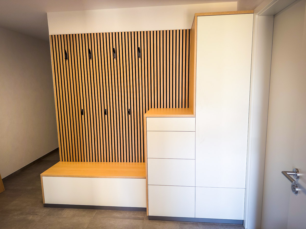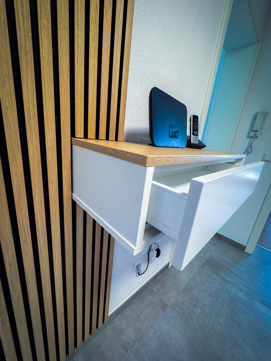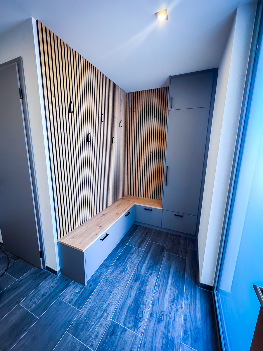 Ob Stauraumwunder unter der Dachschräge, clevere Lösungen für kleine Räume oder große Wohnträume – alles ist möglich. Ich arbeite mit hochwertigen Beschlägen von Blum und Häfele und setze auf Akustikpaneele in allen Farben, damit nicht nur die Optik, sondern auch der Klang stimmt.