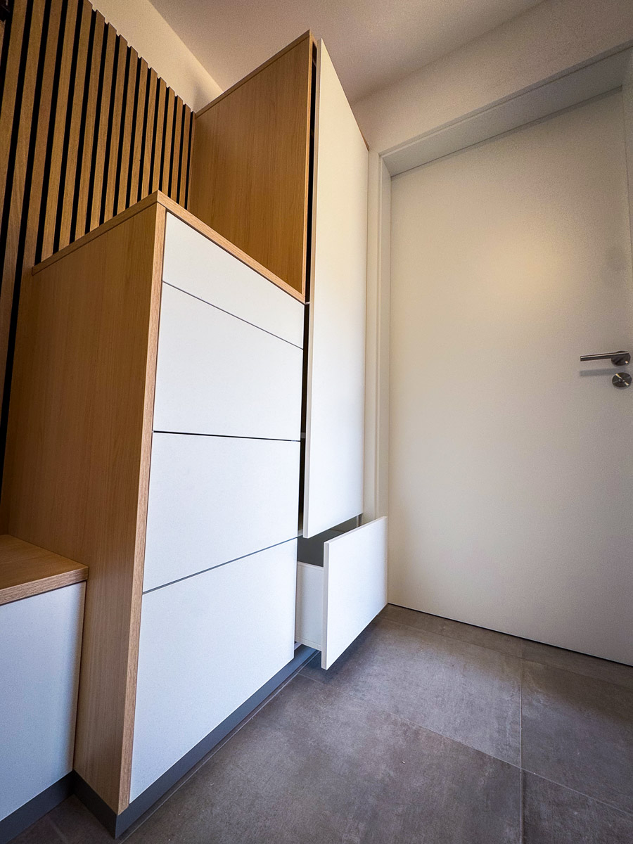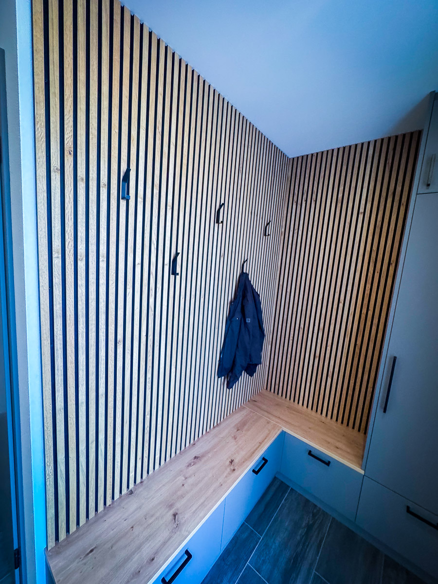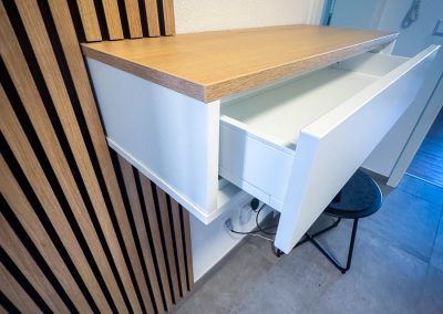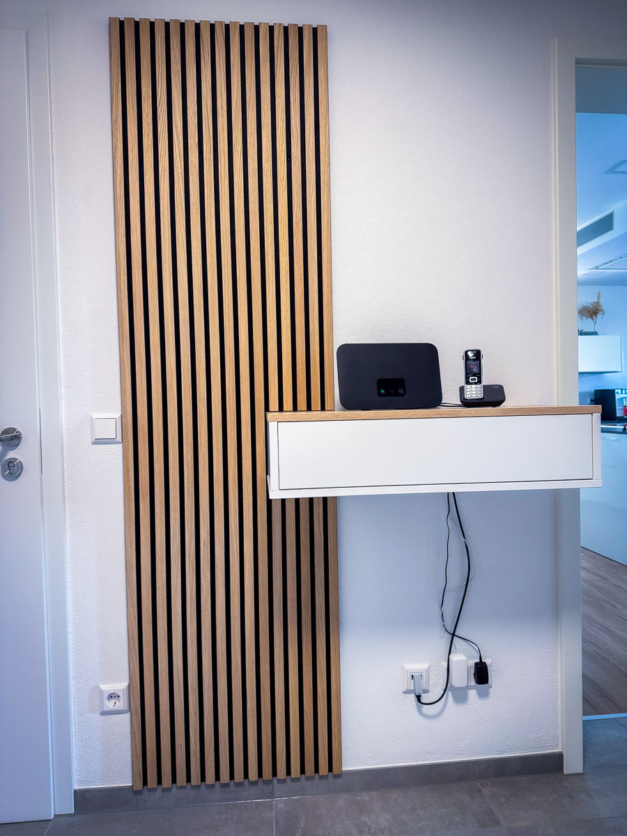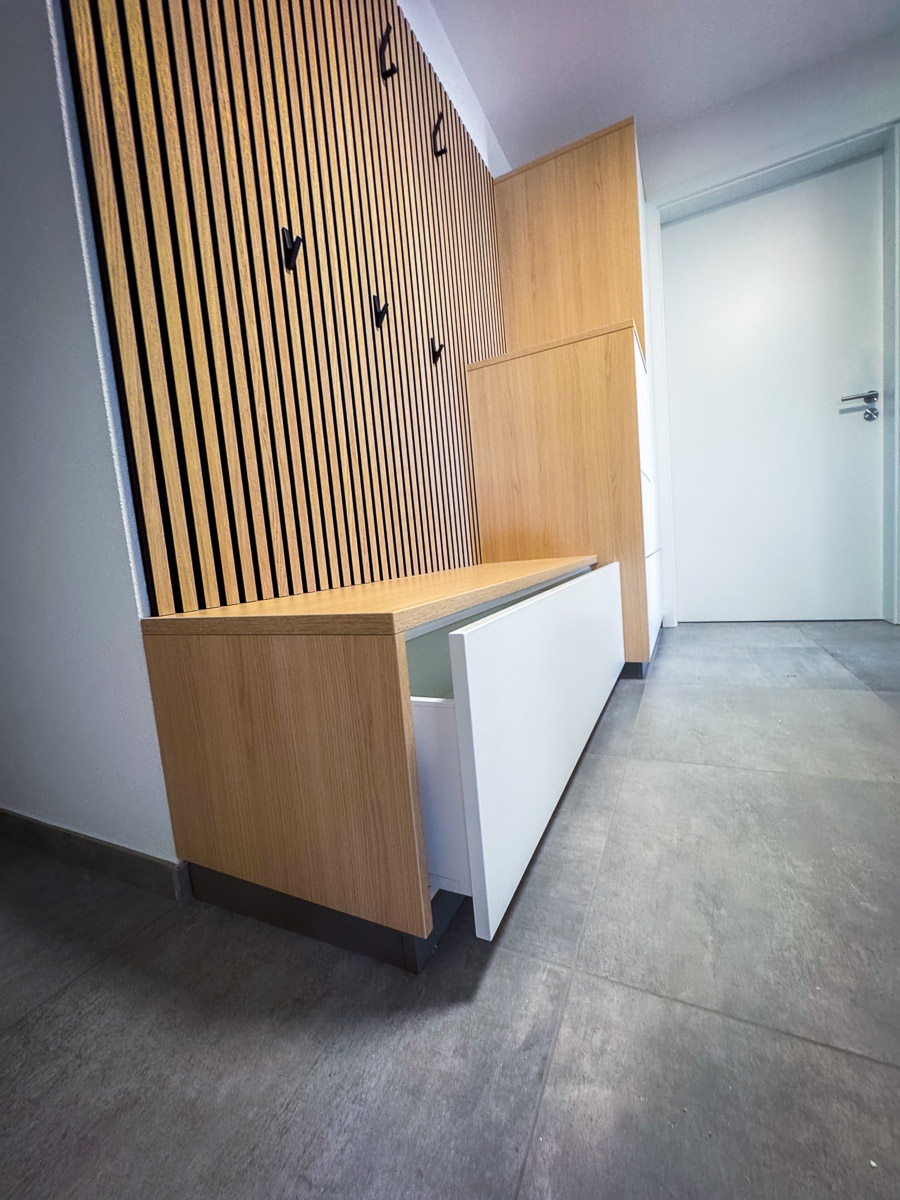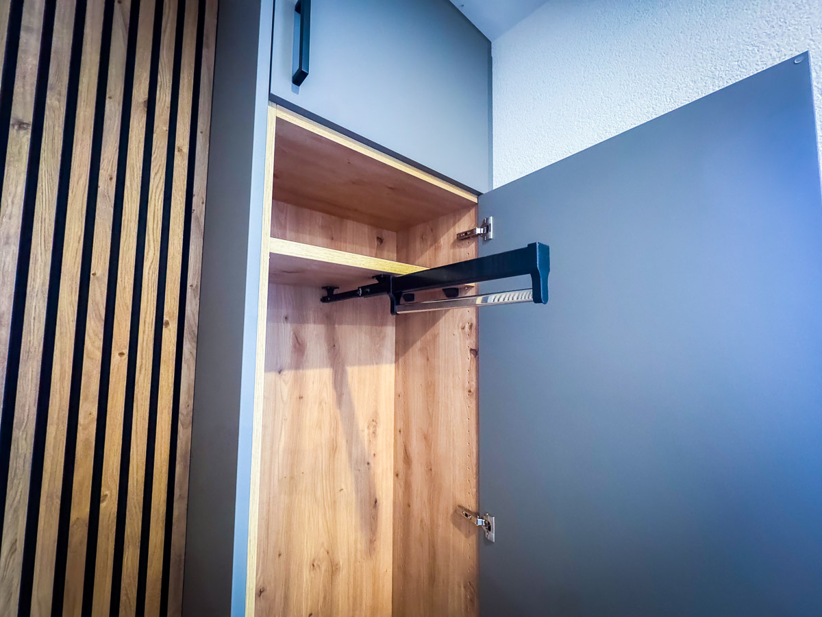 Ob Stauraumwunder unter der Dachschräge, clevere Lösungen für kleine Räume oder große Wohnträume – alles ist möglich. Ich arbeite mit hochwertigen Beschlägen von Blum und Häfele und setze auf Akustikpaneele in allen Farben, damit nicht nur die Optik, sondern auch der Klang stimmt.