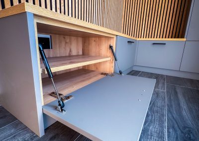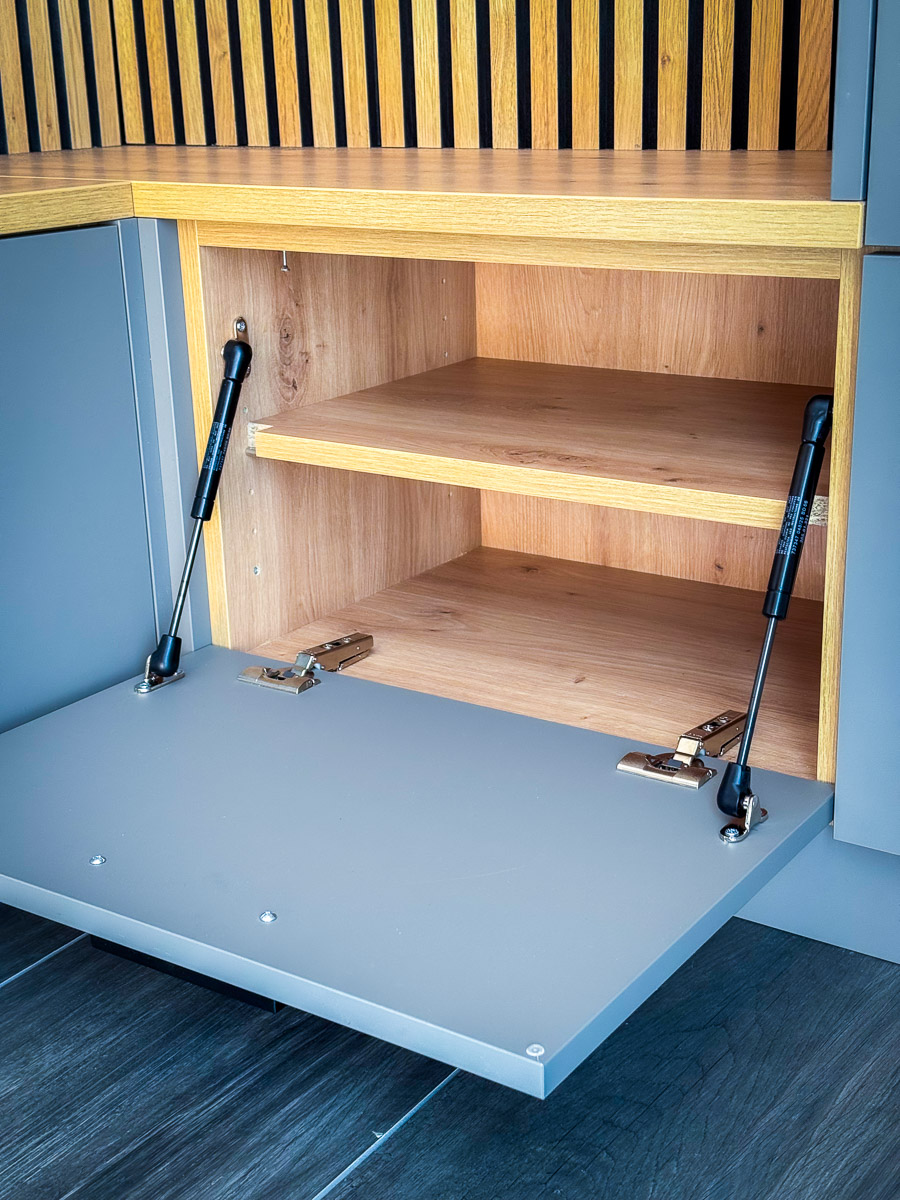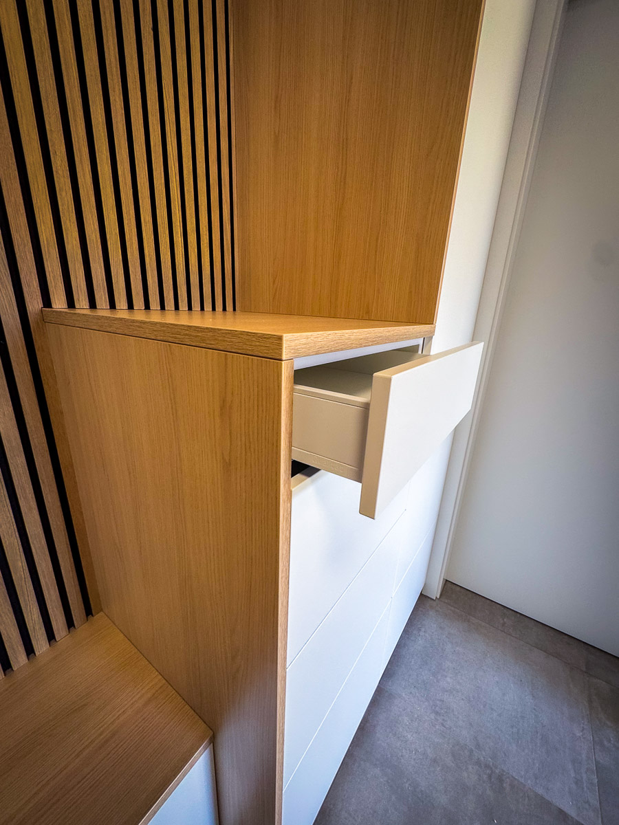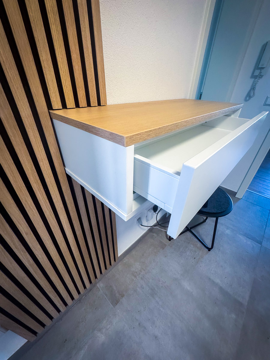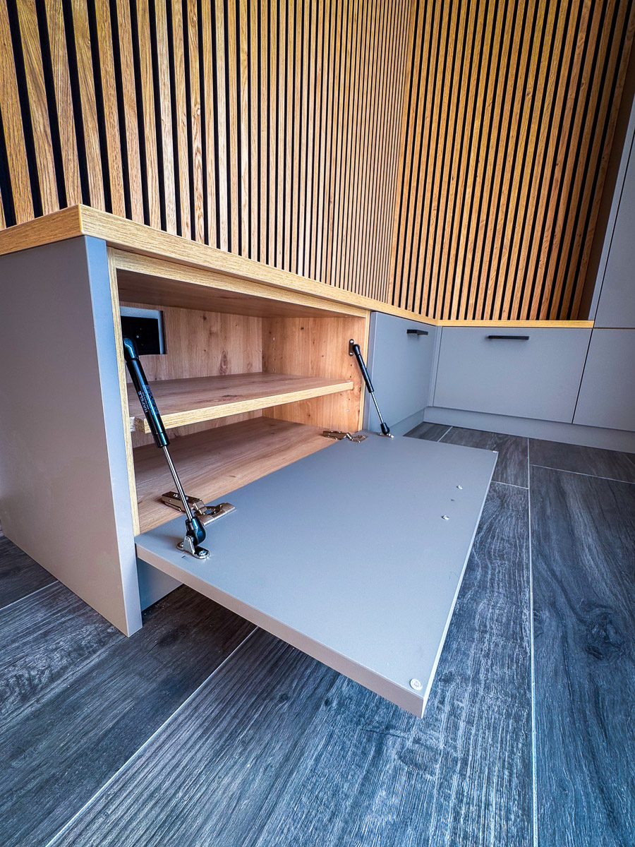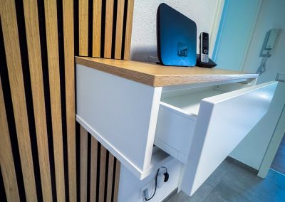 Ob Stauraumwunder unter der Dachschräge, clevere Lösungen für kleine Räume oder große Wohnträume – alles ist möglich. Ich arbeite mit hochwertigen Beschlägen von Blum und Häfele und setze auf Akustikpaneele in allen Farben, damit nicht nur die Optik, sondern auch der Klang stimmt.